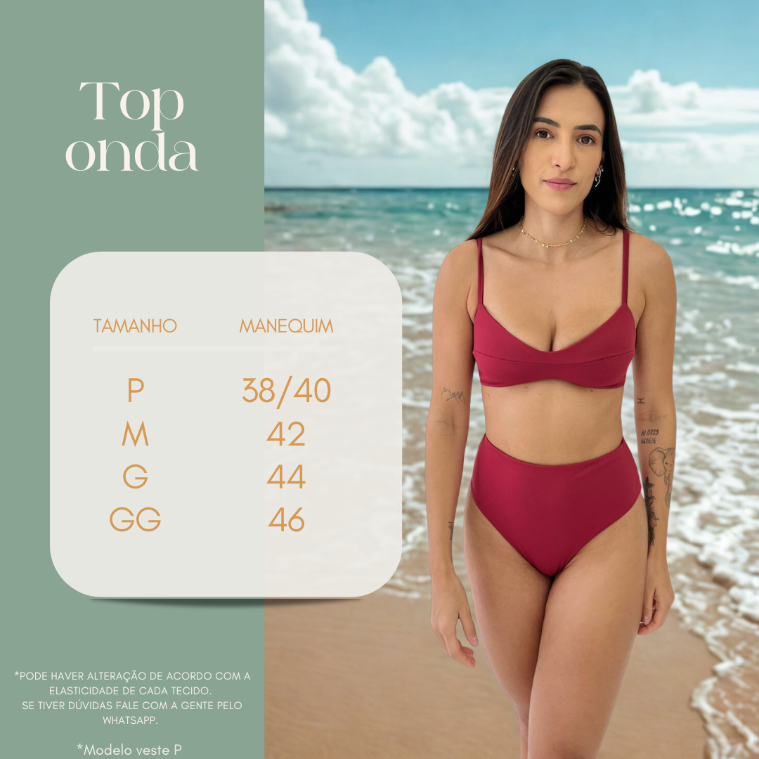 O Top Onda é um modelo que se adapta perfeitamente com modelagem anatômica no busto que garante alta sustentação, trazendo conforto e segurança com as laterais e as costas mais largas. Possui regulador nas alças.